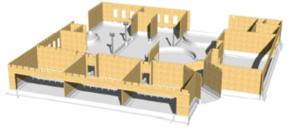 La tipologia strutturale scelta in fase progettuale è quella di struttura a pannelli a strati incrociato (X-LAM) con impalcato rigido di copertura. Il vantaggio della struttura in X-LAM si basa sulla leggerezza del materiale costruttivo, l’elevata resistenza e duttilità, che lo rende perfetto per l’utilizzo in zona sismica. La duttilità di queste strutture risiede nelle sue connessioni (viteria, bulloneria e piastre) costituite da elementi in acciaio, materiale principe in termini di riserva elastica. L’accoppiamento tra legno e acciaio in queste tipologie strutturali consente di sfruttare le caratteristiche migliori di entrambi i materiali: la leggerezza e l’elevata resistenza del legno, e la grandissima capacità duttile dell’acciaio.
