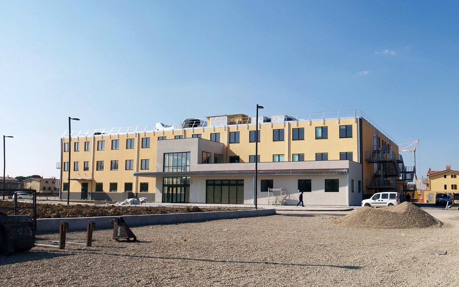 Prestazione svolta: Progettazione preliminare, definitiva, esecutiva strutturale, impiantistica e architettonica; direzione lavori, assistenza e contabilità e coordinamento della sicurezza in fase di progettazione ed esecuzione. L’intervento ha previsto la realizzazione di un edificio per “attrezzature sanitarie di cui alla legge 847/64” in Viale Santa Margherita, ad Arezzo.